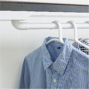 - ハンガーをかけたまま一番上まであげても、ぶつからないよう配慮されたデザインです。本体もキズつかないし、ぶつかった衝撃で洗濯物がずれる、なんてこともありません。